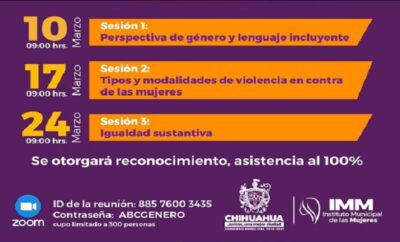 Ciudad de Chihuahua.- El Instituto Municipal de las Mujeres (IMM), hace una atenta invitación a empresas, dependencias, academia,...