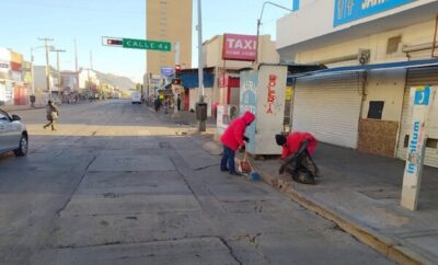 – En el primer cuadro de la ciudad, las cuadrillas realizan la limpieza y recolección de basura divididos...