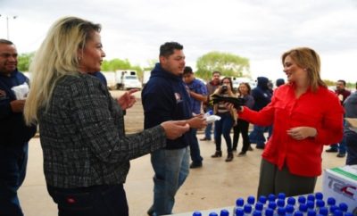 Chihuahua.-La presidenta municipal, Maru Campos Galván, kits de sanitización a personal de la Dirección de Servicios Públicos Municipales...