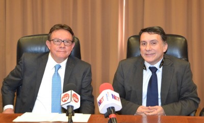 Chihuahua.- Manuel Russek Valles, secretario de Economía en Chihuahua acompañado de Eduardo Castellanos, Director Comercial de Aerolíneas TAR,...