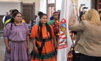 Chihuahua.- La gobernadora Maru Campos abanderó a la delegación de 18 atletas rarámuri, que participará en la cuarta...