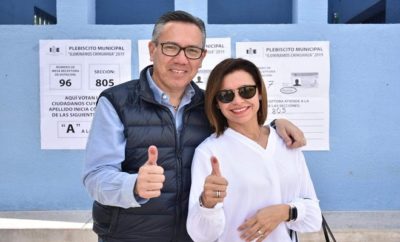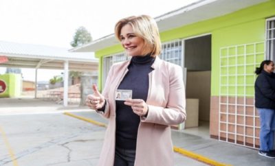 La presidenta municipal Maru Campos Galván asistió a participar en el plebiscito emitiendo su voto a favor del...