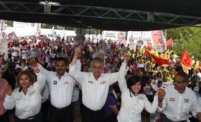 Ante miles de personas y en un ambiente de fiesta, el candidato del PRI Enrique Serrano visitó junto...