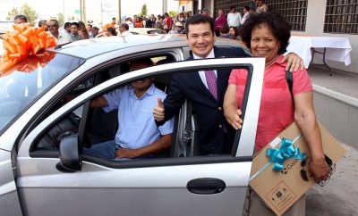Dos automóviles último modelo, 20 pantallas de televisión y 20 computadoras (laptop), fueron entregadas este día por la...