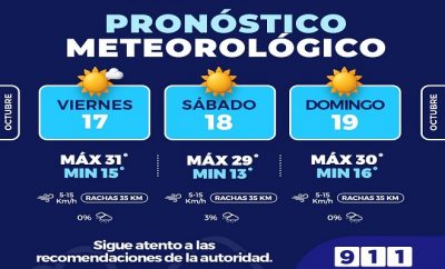 Redacción | 17 octubre, 2025Pronostican días soleados del 17 al 19 de octubre