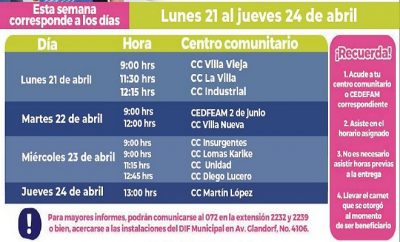 –Del 21 al 25 de abril podrás acudir a tu centro comunitario. Ciudad de Chihuahua.- El DIF municipal, ...