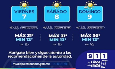 Ciudad de Chihuahua.- La Coordinación Municipal de Protección Civil, informa que este fin de semana, del 7 al...