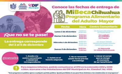 -Adultos mayores podrán acudir por su paquete alimentario del 2 al 5 de diciembre. Ciudad de Chihuahua.- Da...