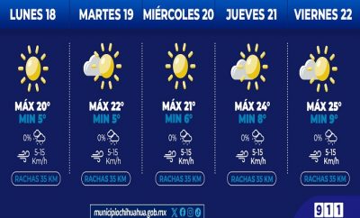 Ciudad de Chihuahua.- La Coordinación Municipal de Protección Civil, informa que, para esta semana, del 18 al 22...