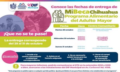 Ciudad de Chihuahua.- El DIF municipal, informa a solicitantes del Programa Alimentario del Adulto Mayor (PAAM) los centros...