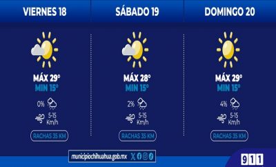 Ciudad de Chihuahua.-Este fin de semana, del 18 al 20 de octubre, se prevén temperaturas máximas de 29°C...