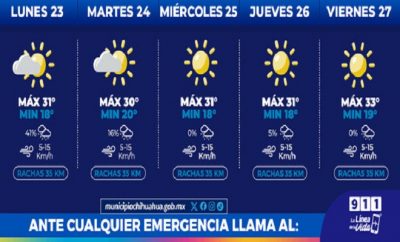 La Coordinación de Protección Civil Municipal, informa que para esta semana se pronostican temperaturas máximas de 33°C con...
