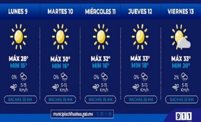 Ciudad de Chihuahua.- La Coordinación Municipal de Protección Civil, informa que, para esta semana del 09 al 13...
