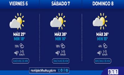 Ciudad de Chihuahua.-Para este fin de semana, del 6 al 8 de septiembre , se prevén temperaturas máximas...