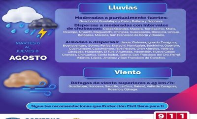 Redacción | 6 agosto, 2024Continúa pronóstico de lluvias en territorio estatal