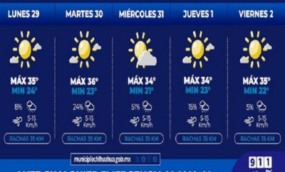 La Coordinación de Protección Civil Municipal informa que para esta semana se pronostican temperaturas máximas de 36°C con...