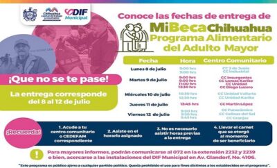 Ciudad de Chihuahua.- El DIF Municipal, informa a beneficiarios del Programa Alimentario del Adulto Mayor (PAAM) los centros...