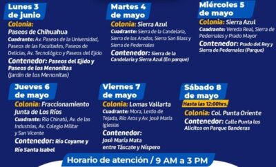 Ciudad de Chihuahua.- Para evitar acumulación de grandes dimensiones de basura en las viviendas, lo que podría generar...