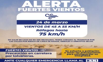 Redacción | 23 marzo, 2024Prevén ráfagas de vientos de hasta 75 km/h para este domingo
