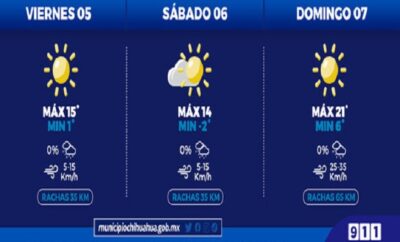 – Para el lunes podrían bajar hasta los -4°C, advierte Protección Civil Municipal. Ciudad de Chihuahua.- La Coordinación...