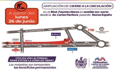 Redacción | 22 junio, 2023Ampliarán cierre en Fuentes Mares por trabajos del Distribuidor Vial Sur