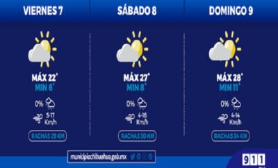 – El domingo sería el día más caluroso. Ciudad de Chihuahua.- La Coordinación Municipal de Protección Civil informa...