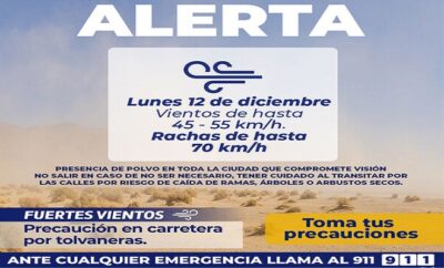 Redacción | 11 diciembre, 2022Se esperan vientos con rachas de hasta 70 km/h este lunes