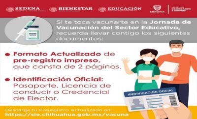Chihuahua.- La aplicación de la vacuna para trabajadores de la educación, inicia el martes 25 de mayo en...