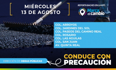 Redacción | 13 agosto, 2025Atenderán Municipio con bacheo siete zonas este 13 de agosto