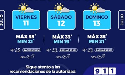 Redacción | 11 julio, 2025Máximas de 35°C y probabilidad de lluvias para este fin de semana: PCM