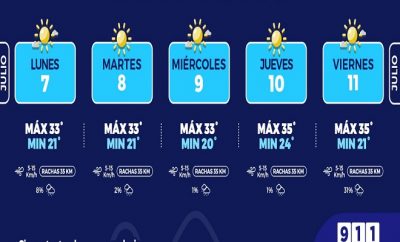 Redacción | 7 julio, 2025Máximas de 35°C en semana del 7 al 11 de julio: PCM