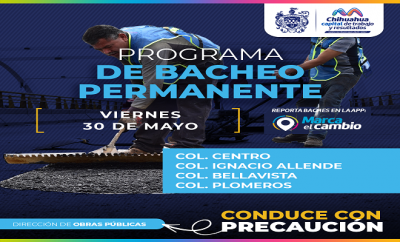 Ciudad de Chihuahua.- La Dirección de Obras Públicas, informa que este viernes se tendrán labores de bacheo en...
