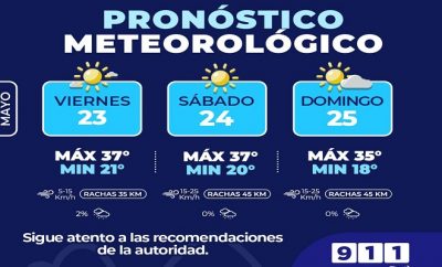 Redacción | 23 mayo, 2025Fin de semana caluroso, máximas de 37°C: PCM