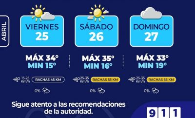 Redacción | 25 abril, 2025Máximas de hasta 35°C este fin de semana: Protección Civil Municipal