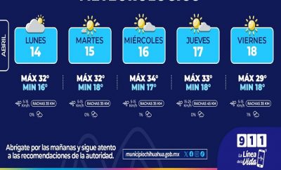 Ciudad de Chihuahua.- La Coordinación de Protección Civil Municipal, informa que para esta semana se pronostican temperaturas máximas...