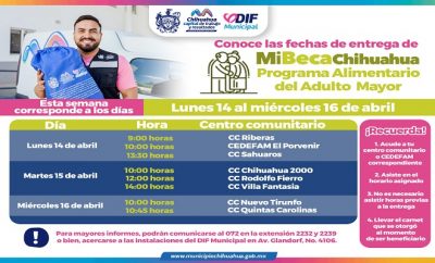Ciudad de Chihuahua.- El DIF Municipal de Chihuahua Capital, informa a beneficiarios del Programa Alimentario del Adulto Mayor...