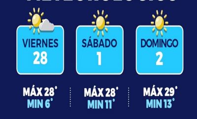 Redacción | 28 febrero, 2025Pronostican temperaturas cálidas para el fin de semana