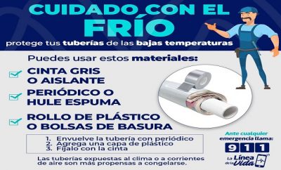 –Recomienda cubrir tuberías con aislantes para evitar fugas y conducir con precaución por zonas donde exista congelamiento. Ciudad...