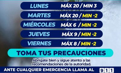 Redacción | 6 enero, 2025Alertan por temperaturas bajo cero para esta semana
