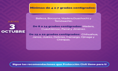 – Se exhorta a la población a abrigarse adecuadamente. Chihuahua.- La Coordinación Estatal de Protección Civil (CEPC) dio...