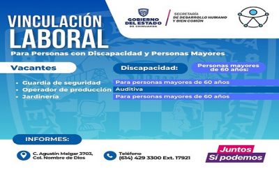 Ciudad de Chihuahua.- La Dirección de Grupos Vulnerables y Prevención a la Discriminación dio a conocer nuevas vacantes...