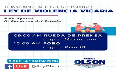 Redacción | 5 agosto, 2024Convoca Olson a Foro sobre Violencia Vicaria