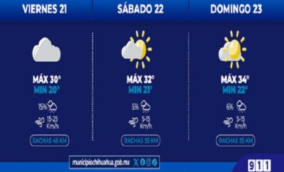Ciudad de Chihuahua.- La Coordinación Municipal de Protección Civil, informa que este fin de semana, del 21 al...