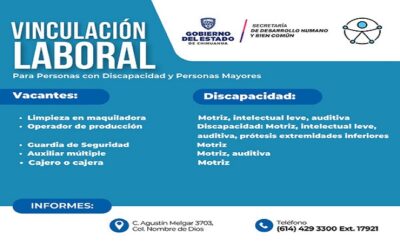Chihuahua.- El Departamento de Vinculación Laboral de Grupos Vulnerables, de la Secretaría de Desarrollo Humano y Bien Común...