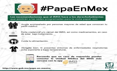 Redacción | 17 febrero, 2016Emiten recomendaciones a la población por visita papal