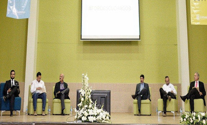 Chihuahua.- Se llevó a cabo el primer debate entre candidatos a la Gubernatura del Estado de Chihuahua en punto de las 15:00 horas en las instalaciones del Tecnológico de Monterrey Campus Chihuahua. Al Foro “Escucha” a los Candidatos, se dieron cita cinco de los seis candidatos postulados al Gobierno del Estado, el candidato por el PRI, Enrique Serrano no asistió a dicho evento.
