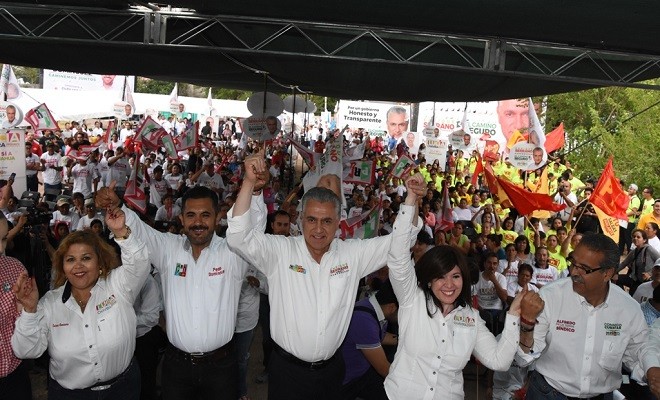 Ante miles de personas y en un ambiente de fiesta, el candidato del PRI Enrique Serrano visitó junto a Lucía Chavira, Pedro Domínguez y Alfredo de La Torre la colonia Madera 65 y la colonia Campesina en donde escuchó a los ciudadanos y planteó su visión de gobierno en la que contempla un mayor desarrollo para los municipios.