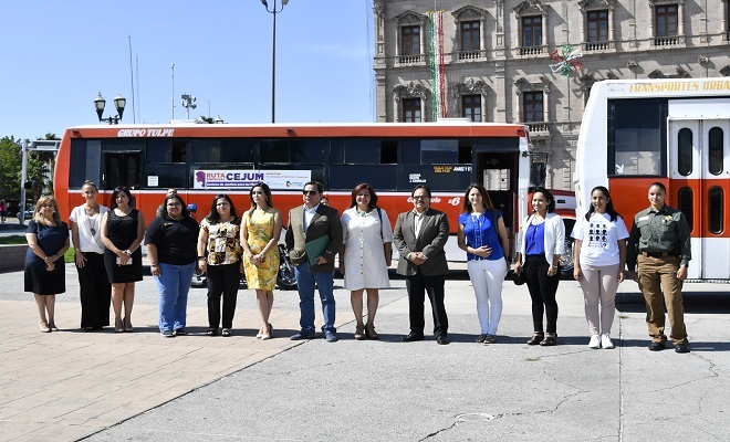 A partir de hoy 13 unidades de las rutas Ramiro Valles-Concordia y Rosario-Arquitectos lucen rótulos especiales para indicar que el recorrido incluye una parada cercana a las instalaciones del Centro de Justicia para la Mujer (Cejum), en la capital del estado.