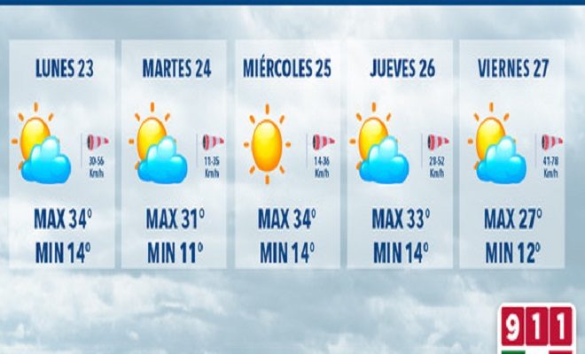 | Chihuahua. – Para este viernes se esperan rachas de viento de hasta 78 km/h El Gobierno Municipal a través de la Coordinación Municipal de Protección Civil emite una alerta preventiva debido al pronóstico meteorológico de esta semana, donde se prevé temporal de vientos con rachas muy fuertes que alcanzarían los 78 kilómetros por hora y un ascenso considerable en el termómetro que alcanzaría los 34 grados Celsius. Para este lunes 23 de marzo, se pronostican 34 grados centígrados como temperatura máxima, mínima de 14 y viento medio de 29 kilómetros por hora con rachas fuertes de 56km/h, que se registrarán a partir de las 14:00 horas, así lo informó Joel Estrada Castillo encargado de despacho de la Coordinación Municipal de Protección Civil. El funcionario municipal agregó que el próximo martes y miércoles se esperan condiciones similares, con temperaturas altas de 31 y 34 grados centígrados con viento suave de 11 y 14 km/ h, con rachas de 35 y 36 km/h, respectivamente. Finalmente, a partir del jueves se espera que aumente el temporal ventoso con rachas que podrían llegar a los 52 kilómetros por hora y el viernes registrarían su punto máximo con rachas muy fuertes de 78km/h. En lo que respecta a las temperaturas el termómetro alcanzaría 33 grados para el jueves y 27°C para el cierre de la semana. Ante esto, se recomienda a la población tomar en consideración estas recomendaciones: Mantenerse a una distancia prudente de anuncios espectaculares, árboles o vidrieras altas que pudieran ser derribados por el viento Retirar de azoteas láminas u objetos que puedan caer con la fuerza del viento Mantener limpios de maleza, basura, ramas o madera los alrededores de su vivienda Resguardar contenedores de basura en un área segura, no los deje en la calle Evitar arrojar colillas de cigarro encendidas Evitar la exposición directa a los rayos del sol y utilizar protector solar Beber abundantes líquidos Para cualquier emergencia comunícate al número 9-1-1 |