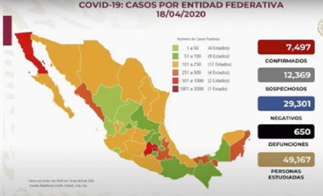 En tanto, la pandemia ha cobrado 650 vidas, en tanto que los contagiados ascienden a 7,497 informó el subsecretario de Salud, Hugo López-Gatell, subsecretario de Salud.